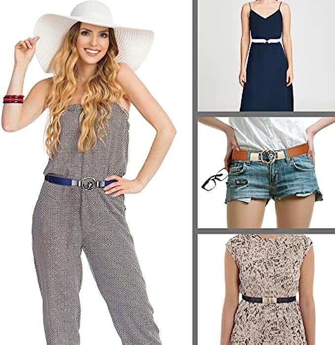 Skinny Belts for Women 5 Pack,EAONE Fashion Dress Belts Stretch Women Waist Belts Plus Size Elastic Waist Band for Dresses