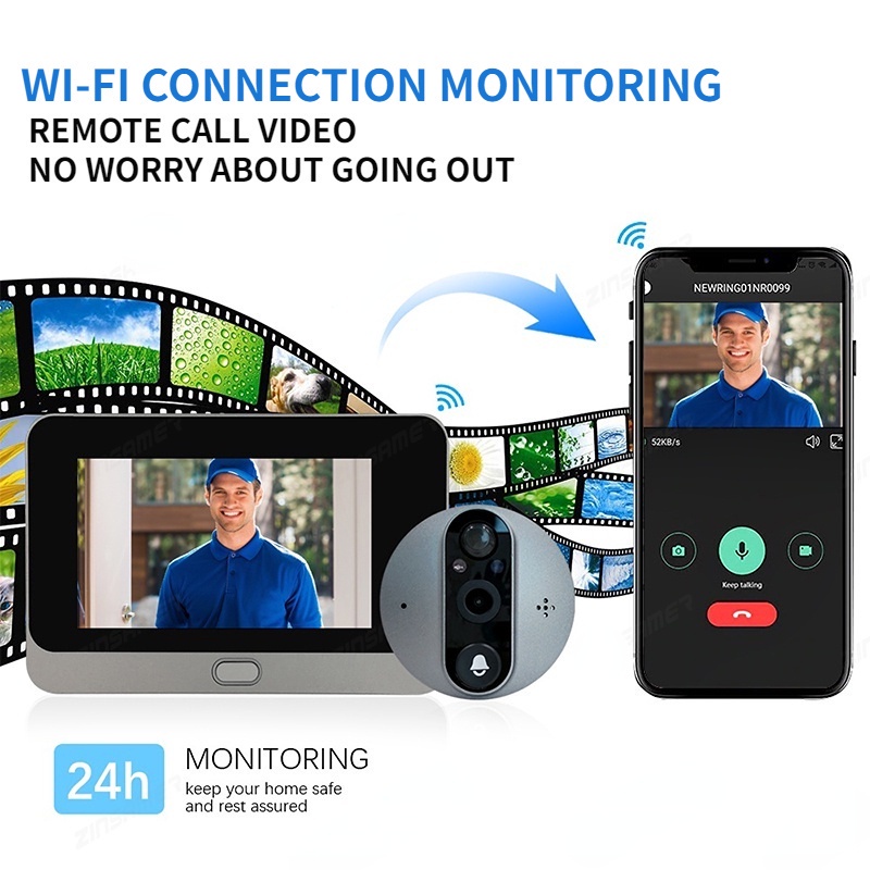 Smart Peephole Camera Tuya WiFi Peephole Door Viewer Wifi Doorbell Video Intercom 4.3" Monitor Detection Built-in battery
