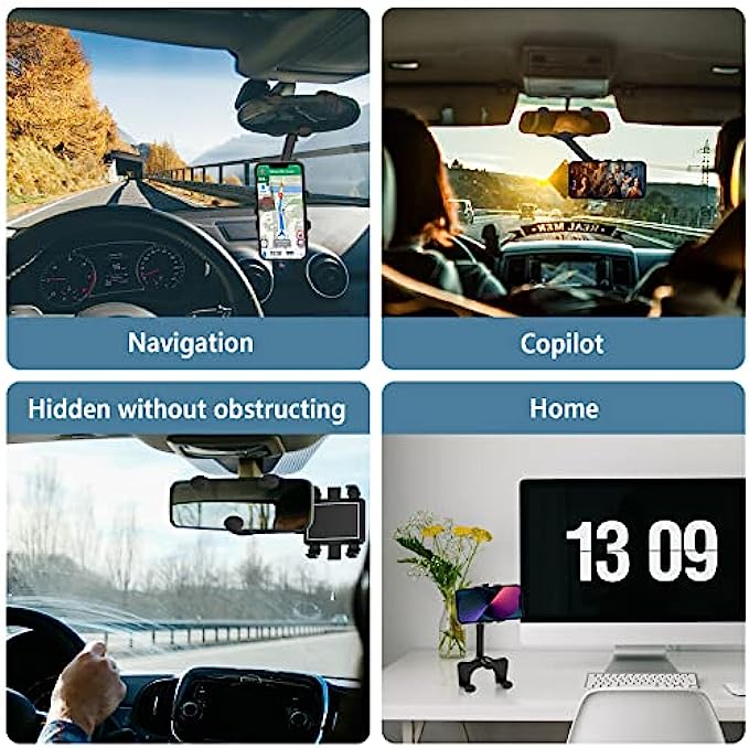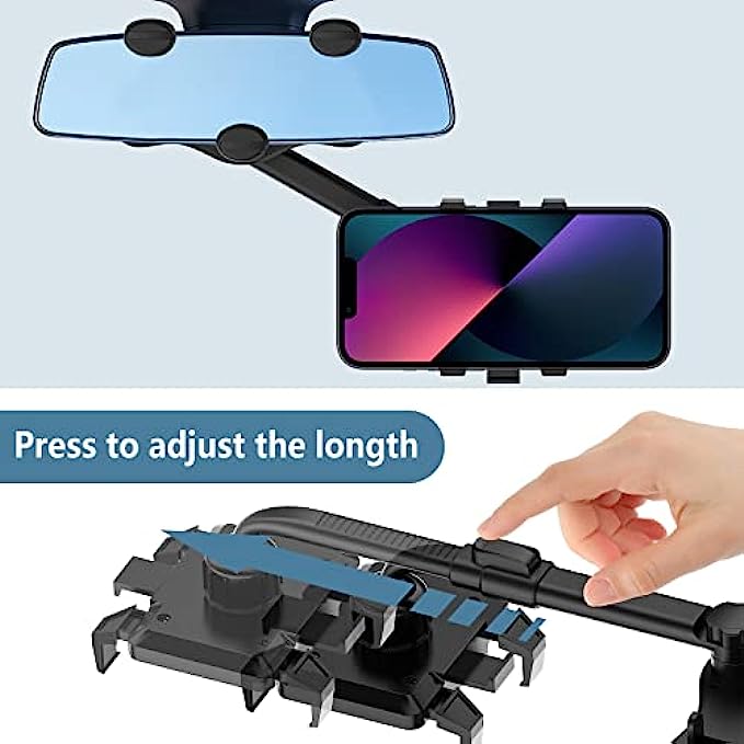 Suppeak Rearview Mirror Holder Phone Mount, Rotatable Car Phone Holder Mount, Applicable for 6-9cm Height Review Mirror