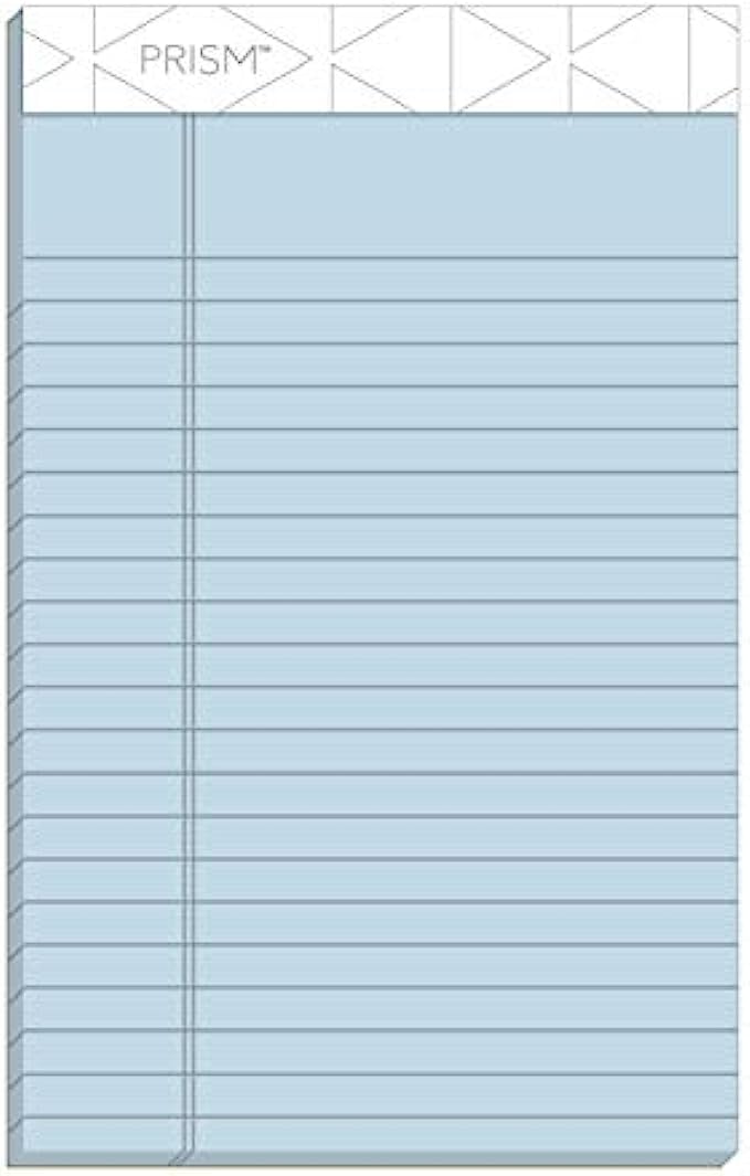 TOPS Prism+ Writing Pads, 5x 8, Perforated, Jr. Legal Ruled, Narrow 1/4 Spacing, Assorted Colors, 2 Each: Pink, Orchid, Blue, 50 Sheets, 6 Pack (63016)