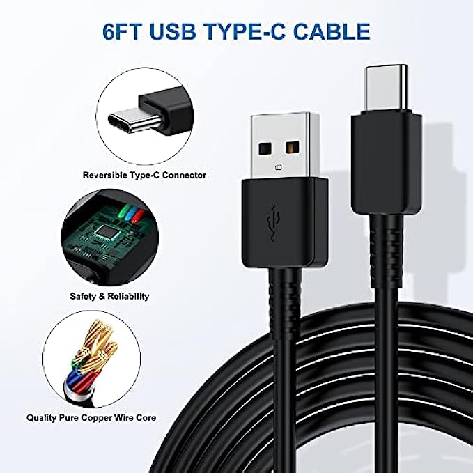 【Safeguard Protection】USB c Android chargers comes with premium built-in safeguards and intelligent IC identification technology to prevent against short circuit, over-current, over-voltage, over-heating and over-charging. It can intelligently recognize the battery type and status, will automatically stop charging when fully charged for a safety charging and long lifespan. 【Quick Charge 3.0 Rapid Charging】Adaptive type c fast charger, enables your battery from zero to 50% in just 30 minutes, 75% faster than standard chargers. 【Fast & Sync】 USB c cell phone wall charger kit charges Samsung phones and tablets with USB 2. 0 ports at max high speed of 480 Mbps. It also charge USB-C devices without the Fast Charging feature as well, with up to a 2 Amp charging rate. Besides, it also has data transfer feature for convenient usage. 【Wide Compatibility】Compatible AFC (Adaptive Fast Charging): Samsung Galaxy S21 Ultra, S21 Plus, S21, S20 Ultra, S20 Plus, S20, S20 FE, S10, S10e, S10+, S9, S9+, S9 Active, S8, S8+, S8 Active, Galaxy Note 20 Ultra , Note 20 5G, Note 10+ 5G, Note 10, Note 9, Note 8, Galaxy A90, A80, A71 5G, A70s, A52, A51, A20, Galaxy Z Fold2, Z Fold2 5G, Z Flip, Z Flip 5G, Fold, GOOGLE Pixel 1, 2, 3, 6, Pixel XL, LG G5, G6, G7, V20, V30 ThinQ Plus, One Plus, HTC, ZTE Axon, Nexus 6p and other USB Type C Device 【Package List】Replace or refund within one year without return, lifetime technical support. Package included: 2x Wall Charger Plug Box Brick and 2x Type-C [ 6 Feet ] Cord.
