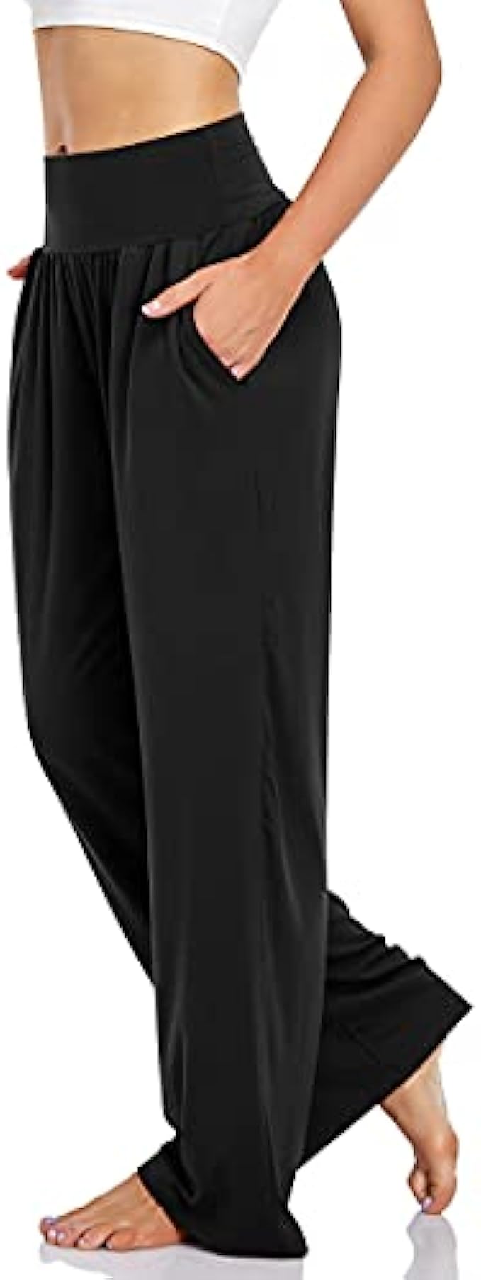 90% Polyester, 10% Spandex Imported Elastic closure US Size: S(4~6), M(8~10), L(12~14), XL(16~18),XXL(20~22). Model wears a size Small, height is 5'8". If you are in between, please select SIZE DOWN. 27 inch inseam FEATURES: Nice And Cute Material Long Pants for Women, Lightweight, Stretchy, Squat Proof, Buttery Soft, Loose Fit, High Waited, Wide Waistband, Wide Leg, Side Deep Pockets, Full Length, Solid Color. DESIGNER: Elasticized high-rise waistband for a flexible fit, wide legs design provides a relaxed fit, ease at any time, offers an comfy look, while deep side pockets give you somewhere to keep a hankie or hair elastic. These womens lounge casual pants are super loose and soft. They feature an elastic waist and wide leg, pair with the graphic tees and sneakers and you're ready to chill with your besties! They're lightweight, stretchy, and so comfortable,are great for pilates, vacations, bedtime, family gathering, lounging around the house.