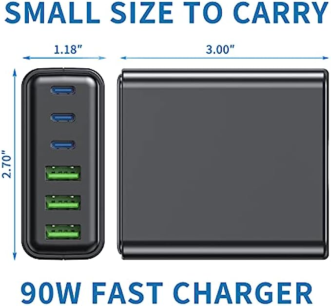 【Fast-Speed Charging】 It with total Design Power 100 watt. total output power 90W. 3x20W USB-C Power Delivery port for iPhone 13/12/12 Pro/12 Pro Max, iPhone 11/11Pro/XS/XR/X, iPad Pro, iPad Air, Galaxy S10 / S9 and other Samsung phones and tablets, more up to 3× faster than with an original old charger. 3 X10W USB A fast charger port for your other devices