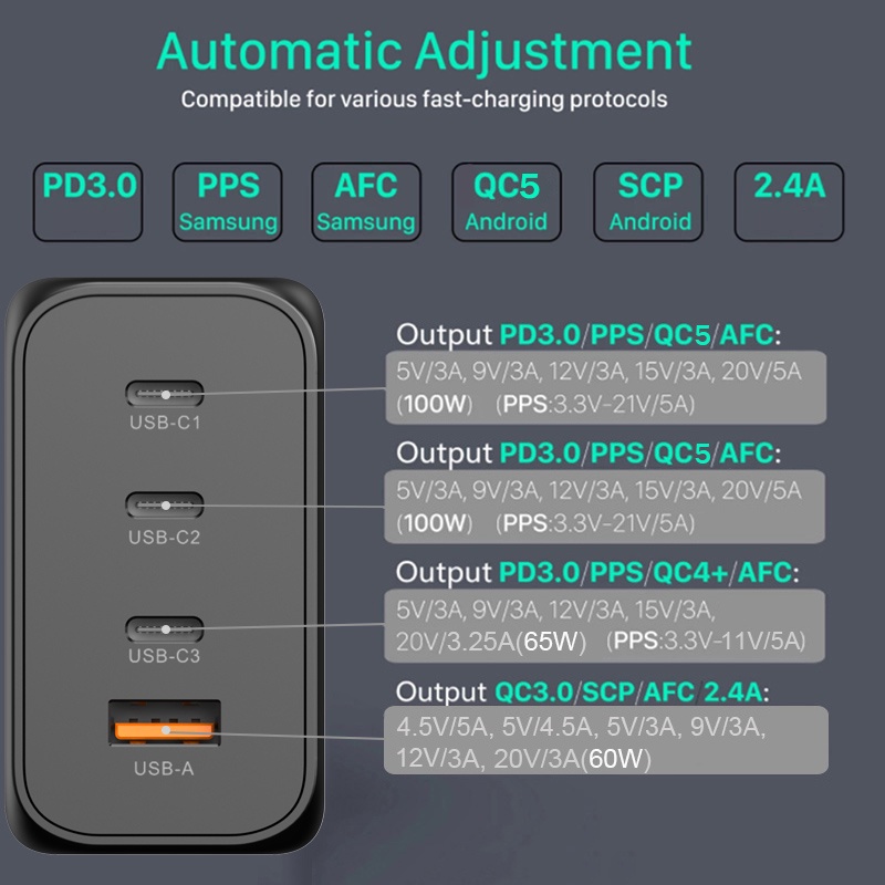 Ugoodbuy 200W USB C Wall Charger 4-Port PD 100W 65W PD 3.0 PPS GaN II Type C Charging Station Power Adapter for MacBook iPhone Samsung