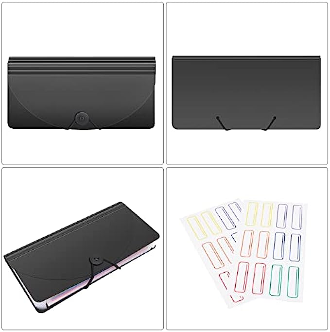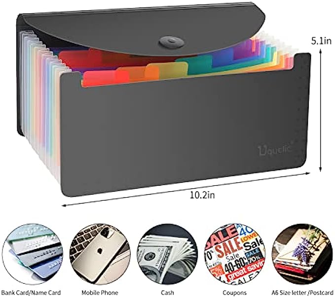Uquelic Desk Stand Receipt Folder - 13 Pockets Expanding Coupons Storage/Rainbow Large Capacity Small Document Organizer with Label, 10 x 5 inch (Black)…