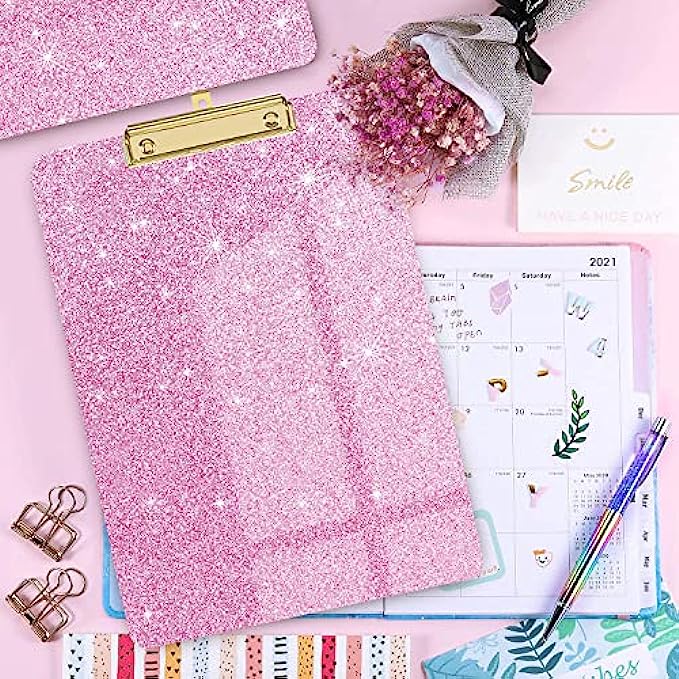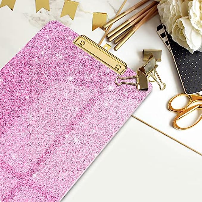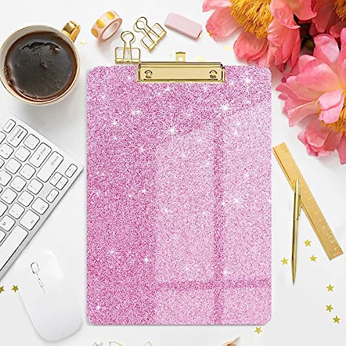 Pink cute design for women girls, bright pink color, classic and chic glitter elements, designed for learning, painting, group projects, office and home use, sturdy 2mm clipboard, say goodbye to monotonous traditional clipboard.