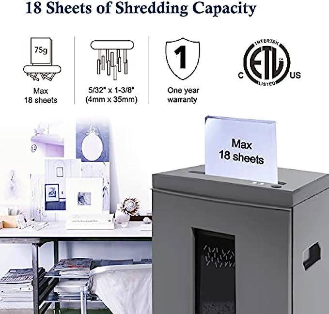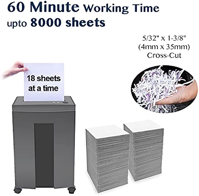 WOLVERINE 18-Sheet 60 Mins Running Time Cross Cut High Security Level P-4 Heavy Duty Paper/CD/Card Ultra Quiet Shredder for Home Office with 6 Gallons Pullout Waste Bin SD9113 (Grey ETL)