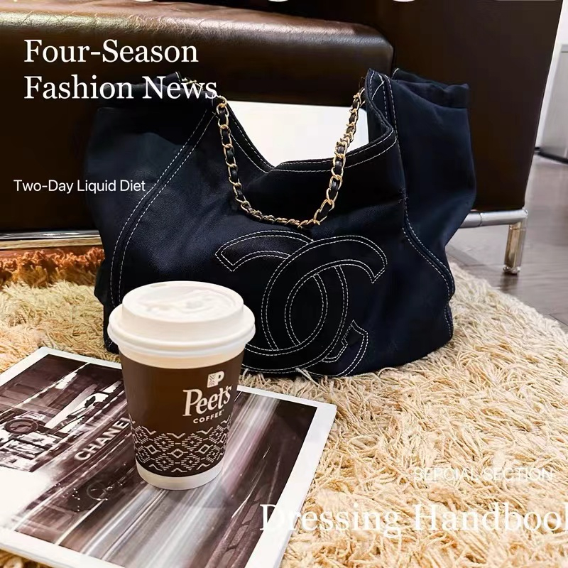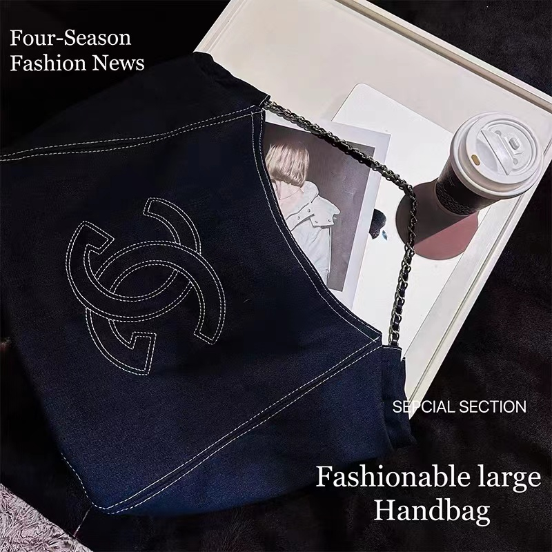 Xiaoxiang Style Big Bag Women New Large-Capacity Denim Tote Versatile One-Shoulder Commuter Portable