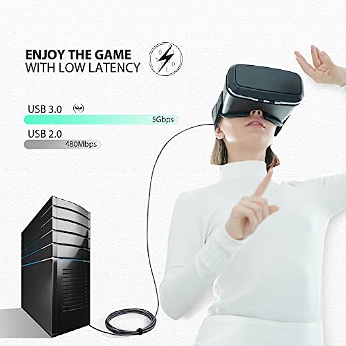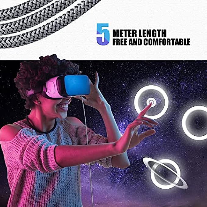 【Have fun with 16ft cable length】With this 5m link cable for oculus quest 2 you can have more freedom and space to enjoy the VR game without worrying that the wire is not long enough.