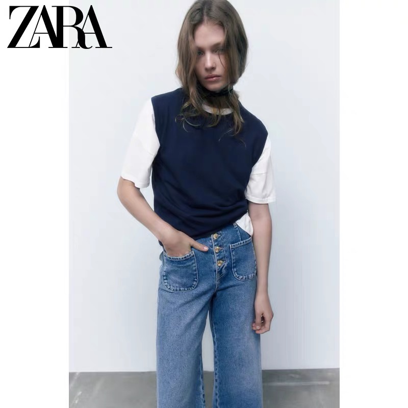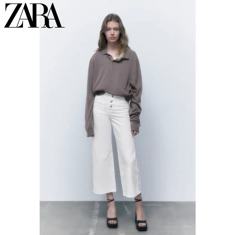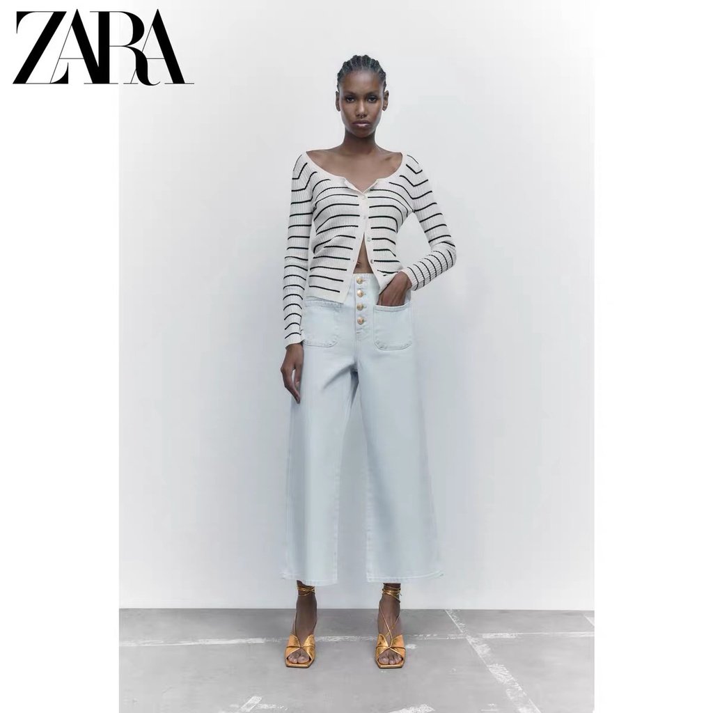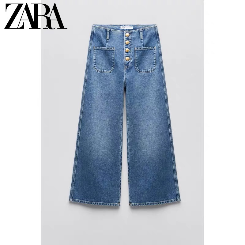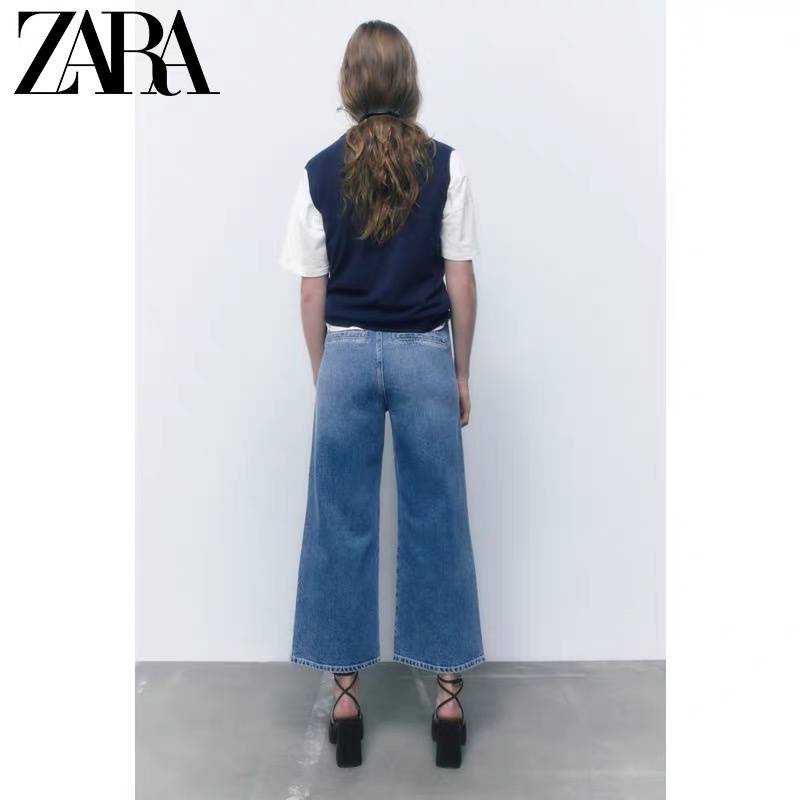 ZARA Summer New Style Women's Z1975 High Waist Loose Wide Leg Cropped Jeans 1889157 427