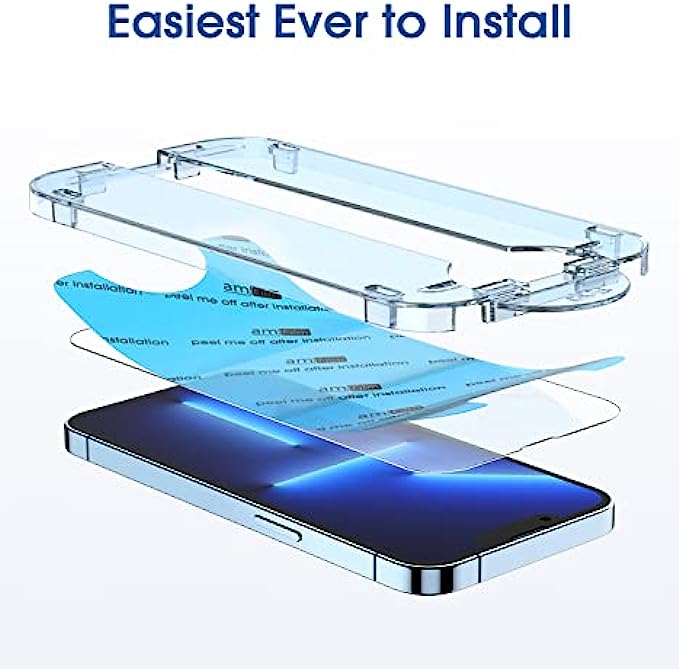 [Patented Auto-Alignment Tech] Perfect installation within 60 seconds! The screen protector is embedded in a plastic frame that fits perfectly over your phone. Set the frame on your phone, swipe down the middle, and done! Watch our Installation Video to see how easy it is to use our Innovative OneTouch Auto-Alignment Screen Protector. [Compatible with iPhone 13 Pro Max 6.7"] Specially designed ONLY for iPhone 13 Pro Max 2021 6.7 inch. Not compatible with any other iPhone models. [2+2 Pack] 2* iPhone 13 Pro Max 6.7" Screen Protectors, 2* Camera Lens Protectors, 2* auto alignment tool kit (screen protectors come pre-installed in the auto alignment tool) and everything you need to install them! [Screen Protection] 0.33mm thick premium tempered glass offers full coverage, scratch resistance, and drop protection for your iPhone 13 Pro Max screen 6.7'' and camera [Anti-Fingerprint] amFilm tempered glass screen protector and camera lens protector for iPhone 13 Pro Max is finished with oleophobic coating to reduce fingerprints and provide ultra-clear high definition with 99.9% transparency.