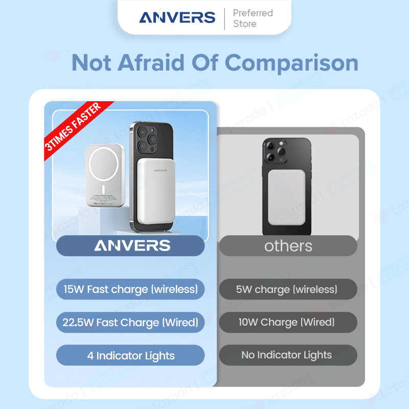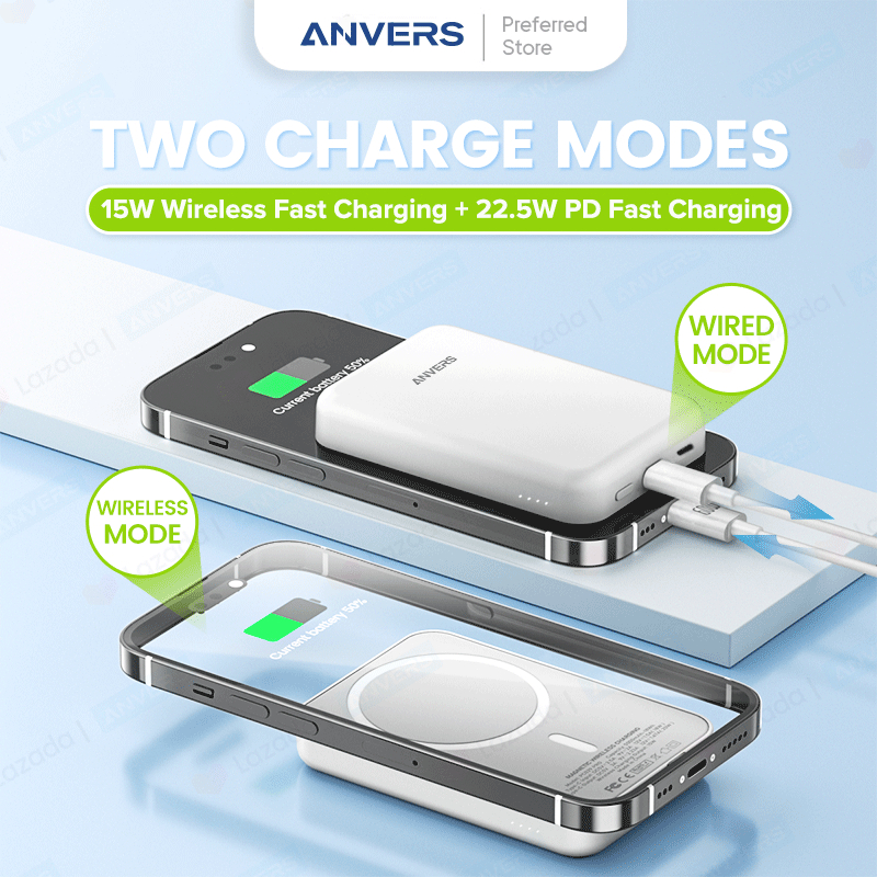Anvers Magnetic Wireless Power Bank - M.S, Battery Pack Powerbank Portable Charger for iPhone 15/14/13/12