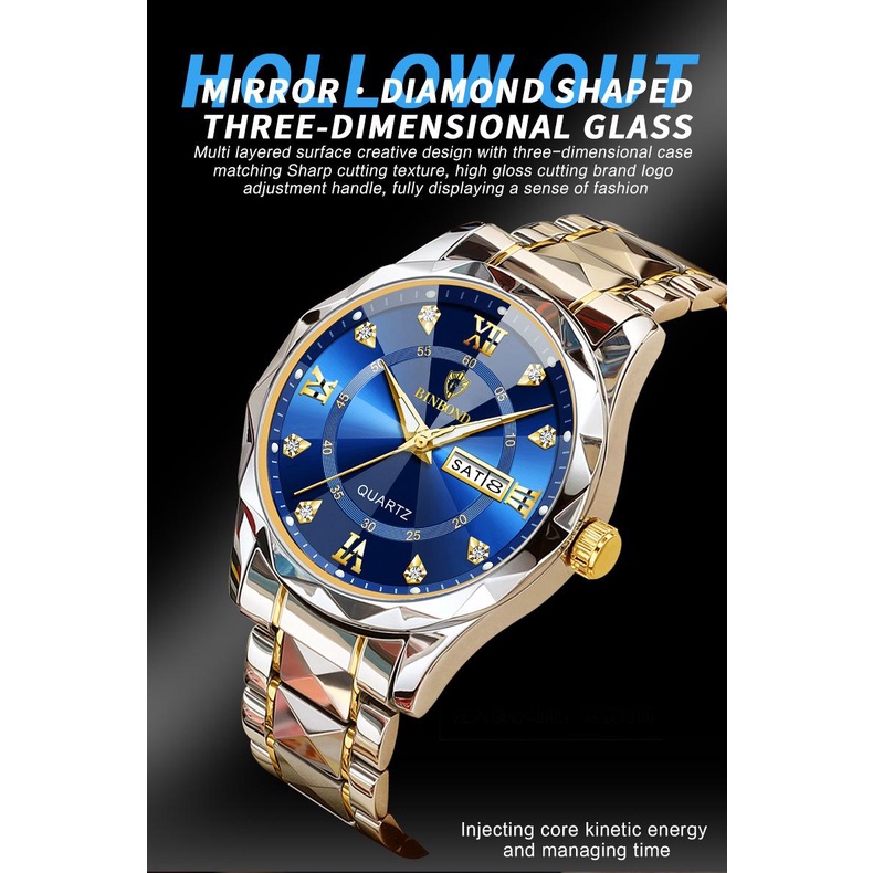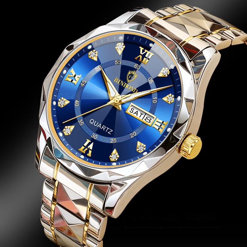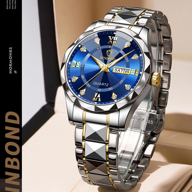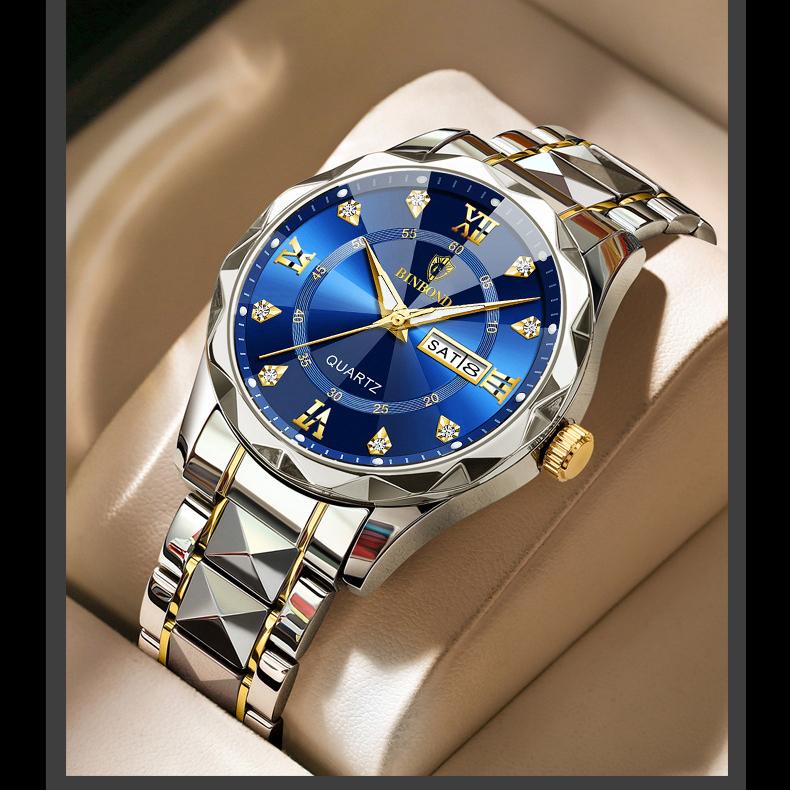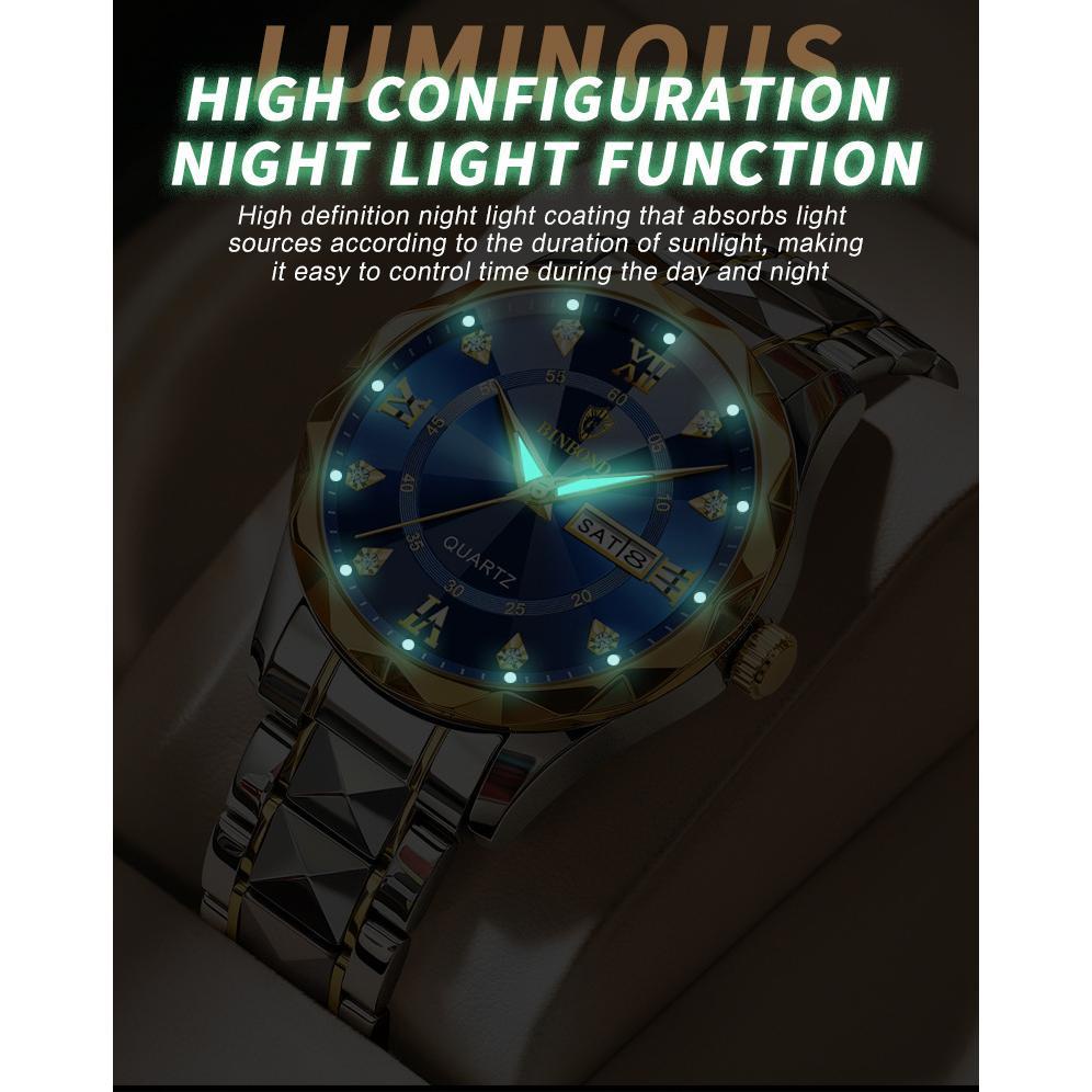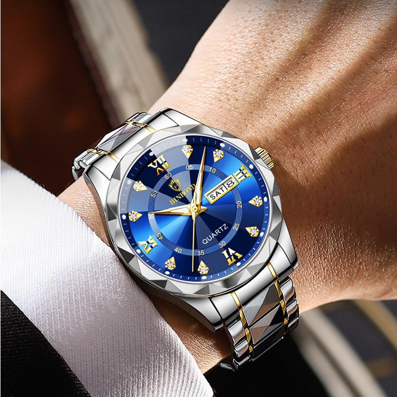 BINBOND Men's Luxury Waterproof Luminous Double Calendar Watch Fashion Men Business Quartz Watch Jam Tangan Lelaki