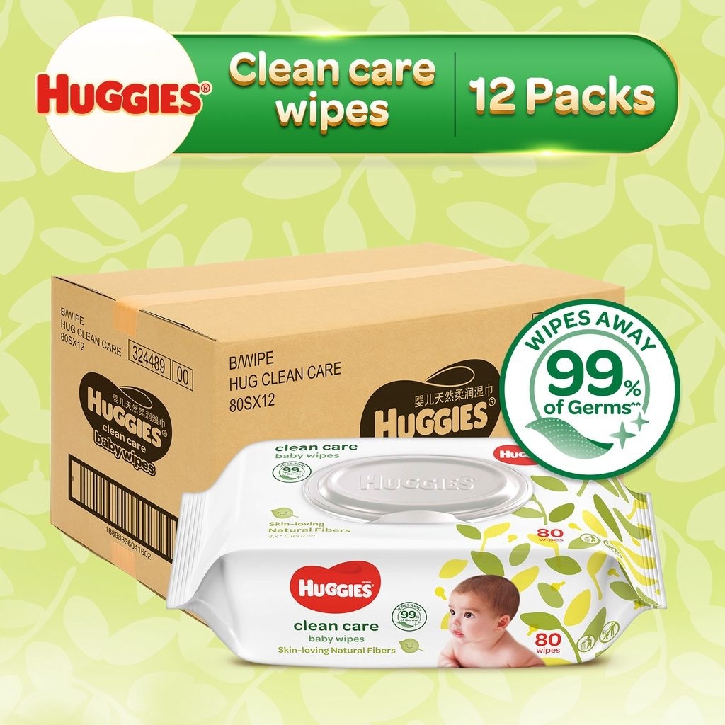 [Carton] Huggies Clean Care Baby Wipes 80s x 12 packs (Online Exclusive)
