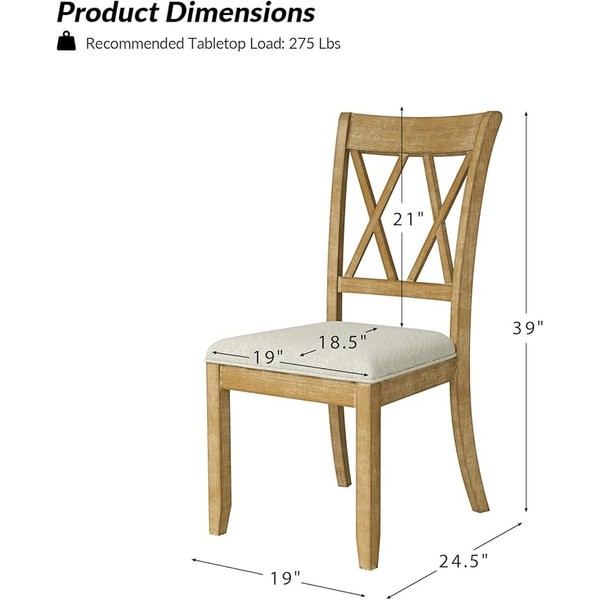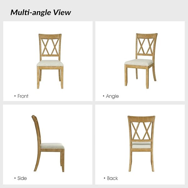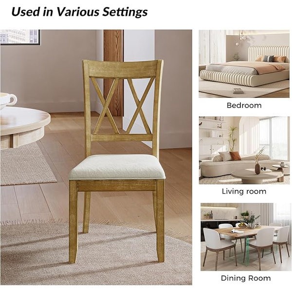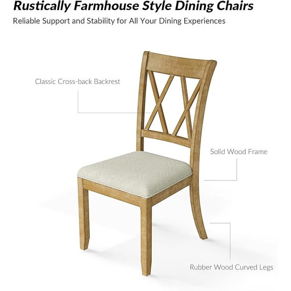 HULALA HOME Wooden Dining Chairs Set of 6, Farmhouse Kitchen Chairs Set with Cross Backrest Wood Legs, Upholstered Accent Dinner Chair for Dining Living Room Restaurant Cafe, Natural