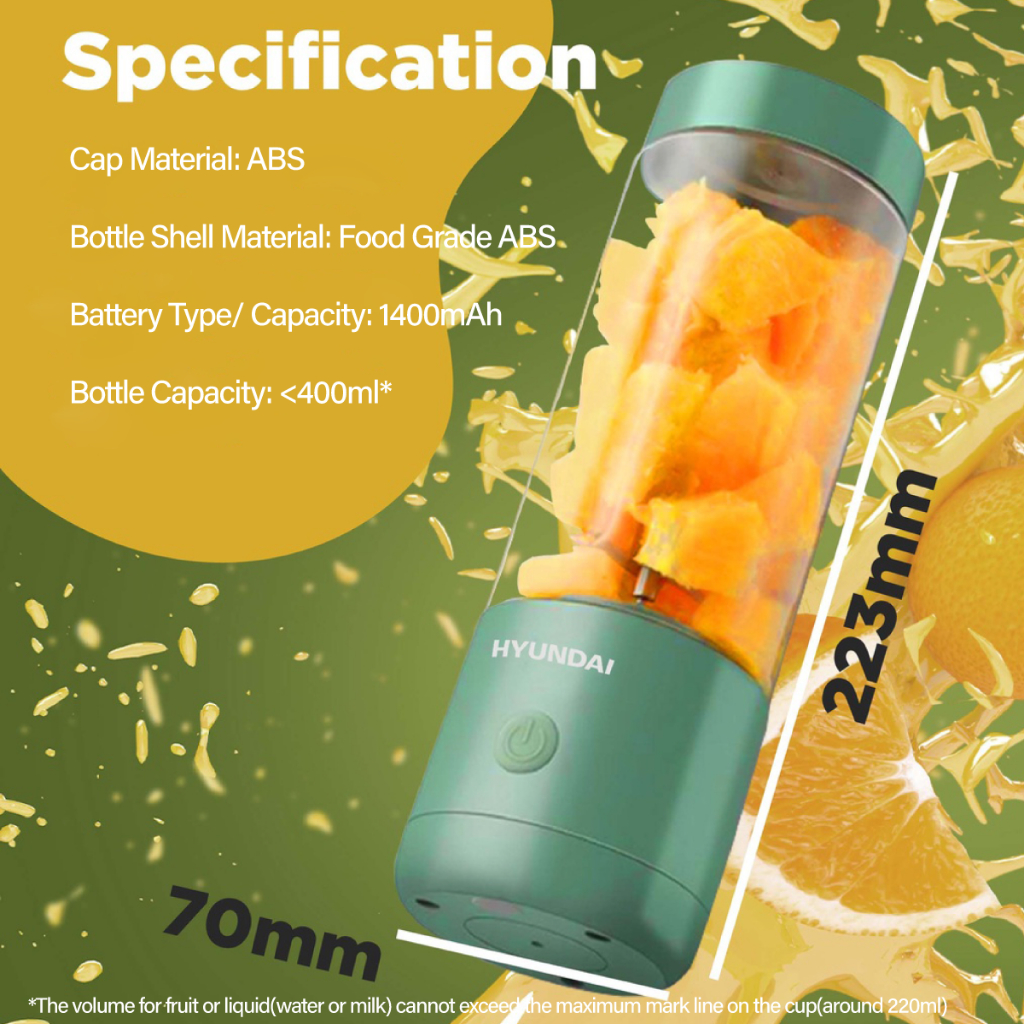 Hyundai Portable Blender Bottle(4 Blades, USB Charge) - Blend Anywhere