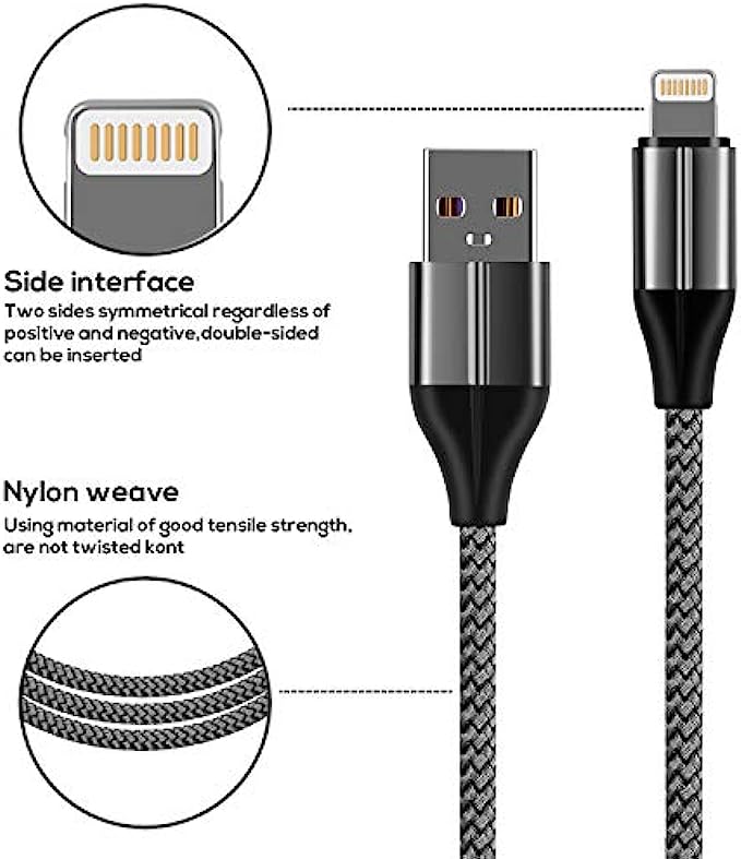 【Superb Performance】Phone cable with anti-resistant aluminum alloy connectors, high toughness PVC, tinned copper core cables to guarantee 100% compatibility to transmit data stably. Anti-overheating, support 2.4A current(Max) and the latest IOS system.