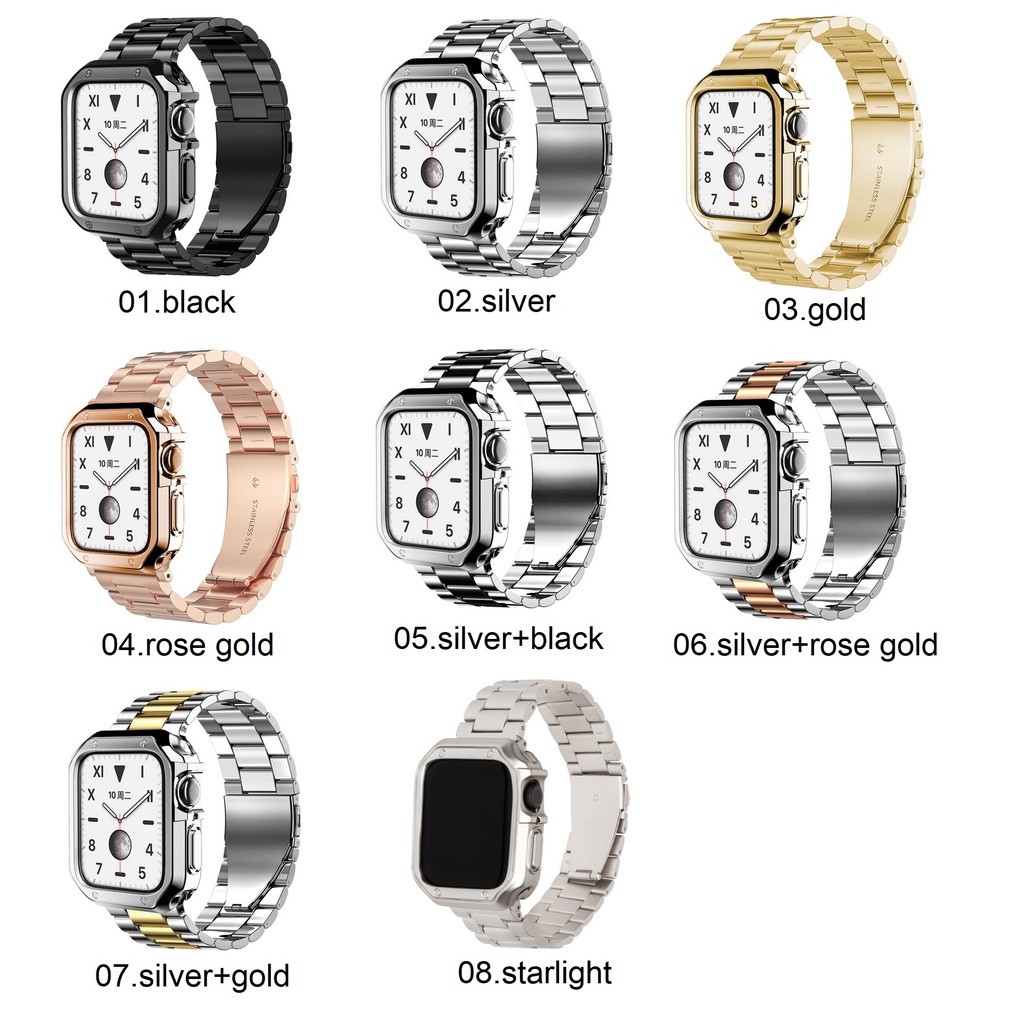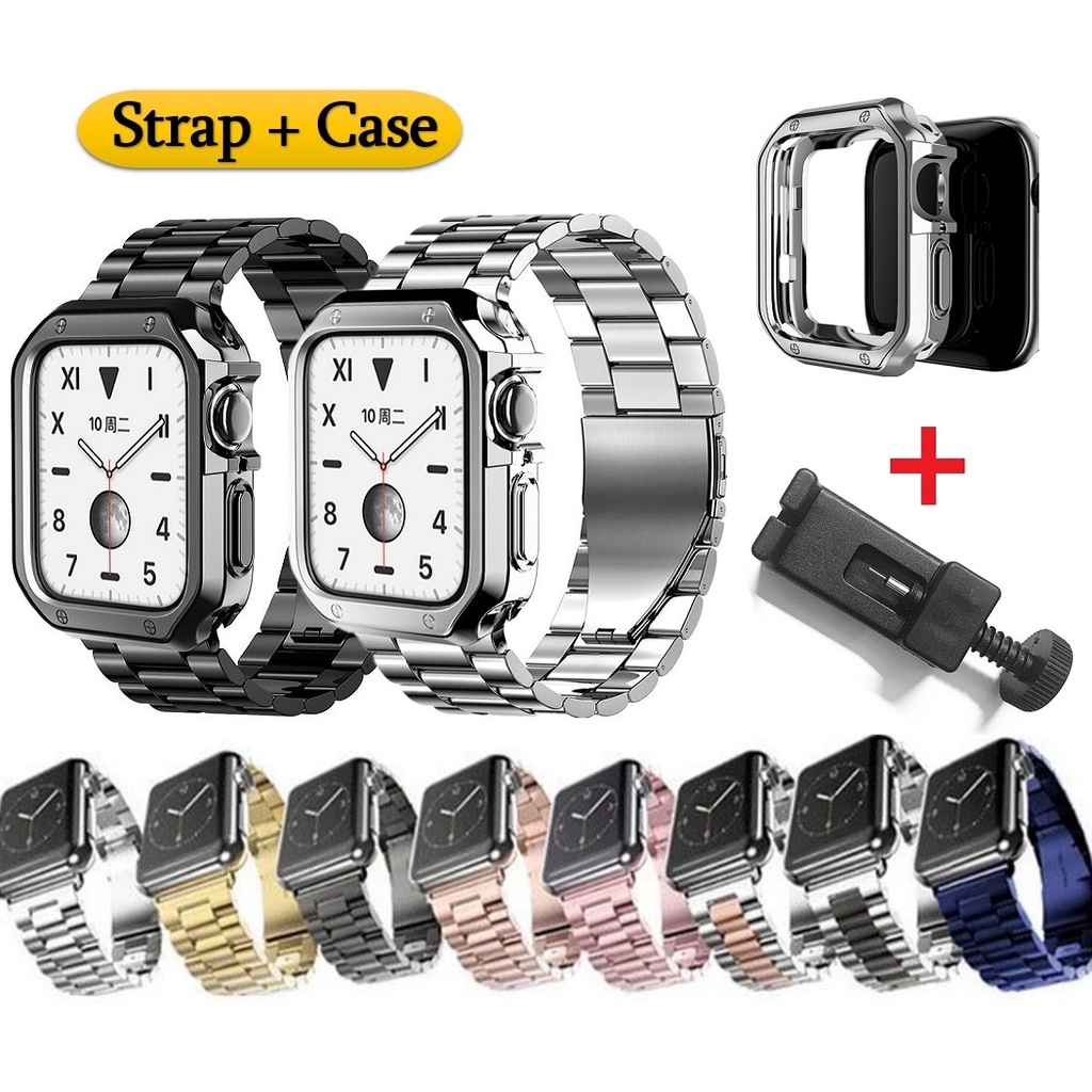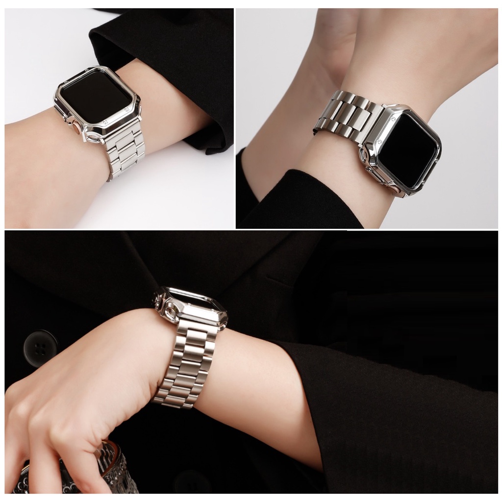 Luxury Strap + Case Compatible For Watch Strap Series 9 8 7 6 5 4 3 2 1,Watch SE,SE2, Ultra 2, Ultra Strap Stainless Steel Watch Strap Size 41mm 45mm 49mm 40mm 44mm Watch Case