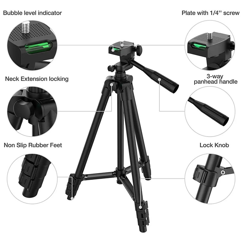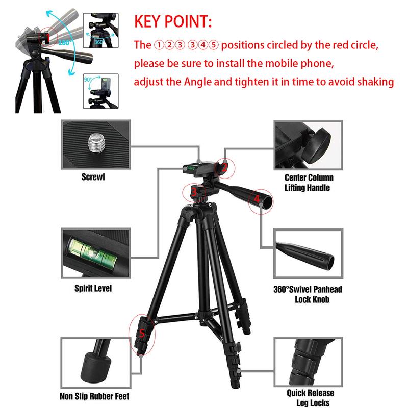 NA-3120 Phone Tripod Stand 102cm Universal DSLR Photography for Gopro iPhone Phone Aluminum Travel Tripod Par with Selfie Remote