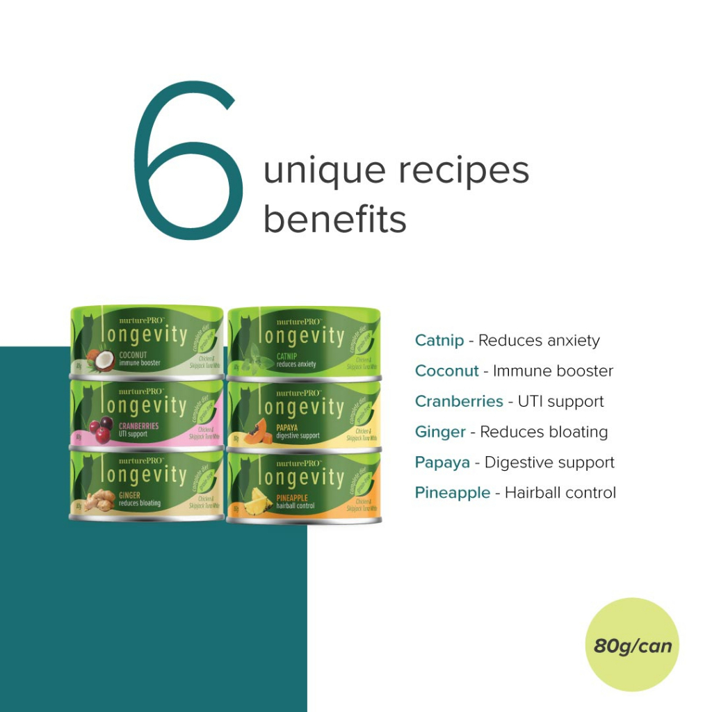NurturePRO Longevity Chicken & Skipjack Tuna Wet Cat Food (80g x 24) | Complete Meal, Meal Topper, Meow, Carton Deal