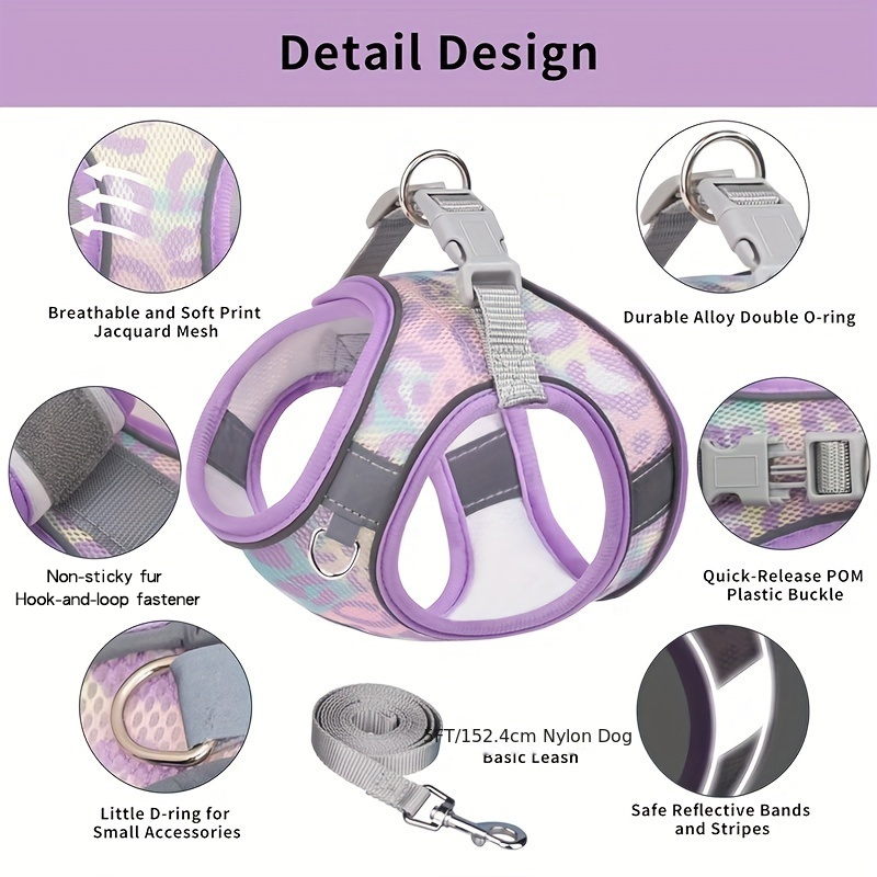 Reflective Camouflage Dog Harness & Leash - Adjustable, Breathable Anti-Escape Design, Easy-Care