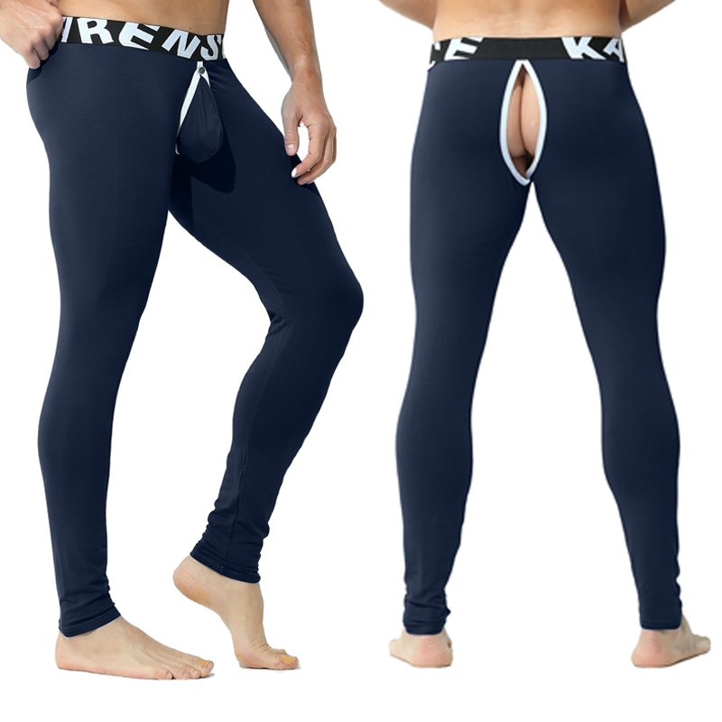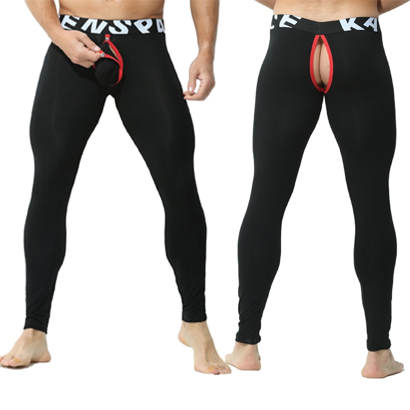 Sexy Men Leggings Quick Drying Tight Detachable Front Pocket Soft Breathable Sweat-Absorbent Home Sleeping Pants