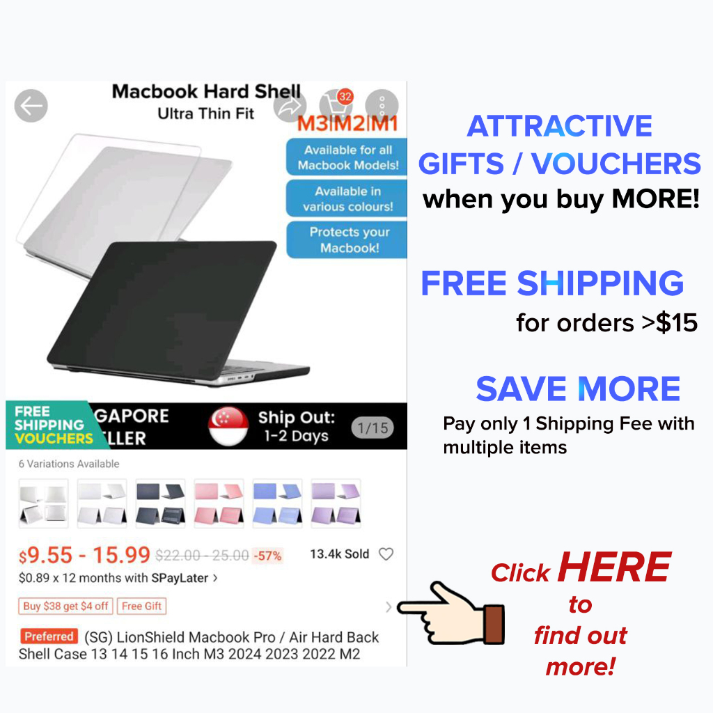 (SG) LionShield Macbook Air/Pro M3 M2 M1 PU Leather Laptop Case(11/12/13/14/15/16 Inch) Sleeve Cover