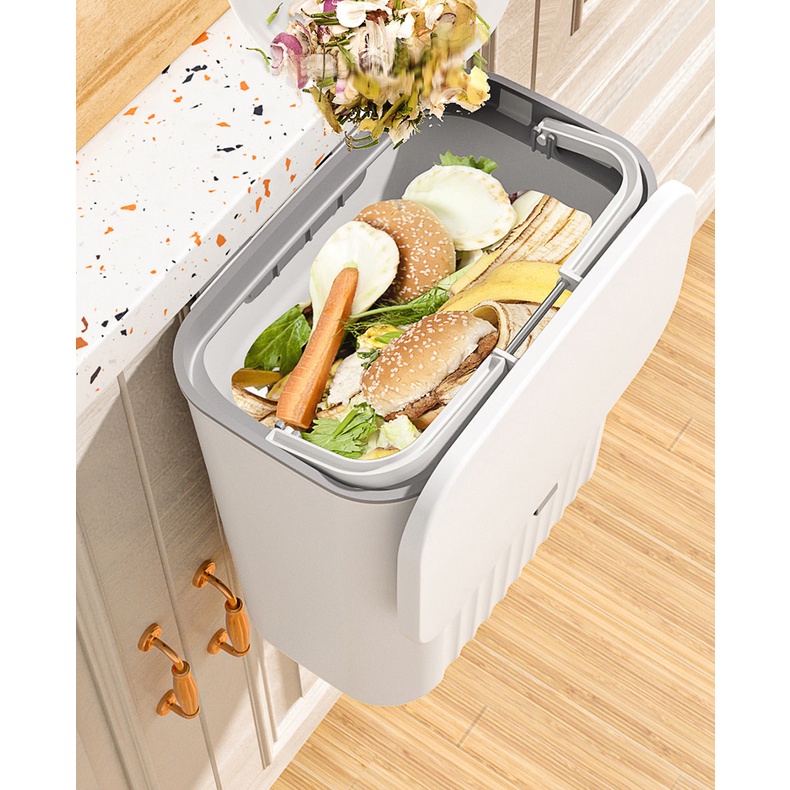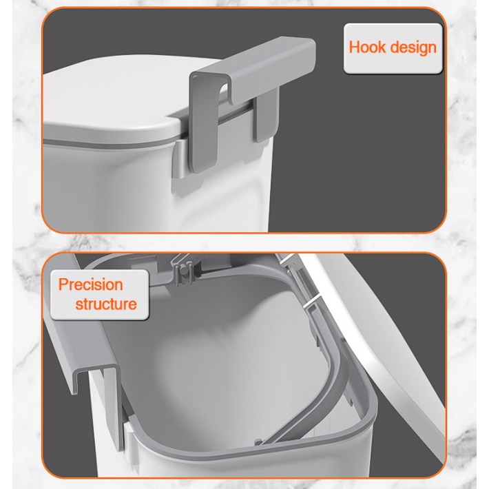 【SG Ready Stock】Hanging Waste Bin Plastic Kitchen Trash Bin With Lid