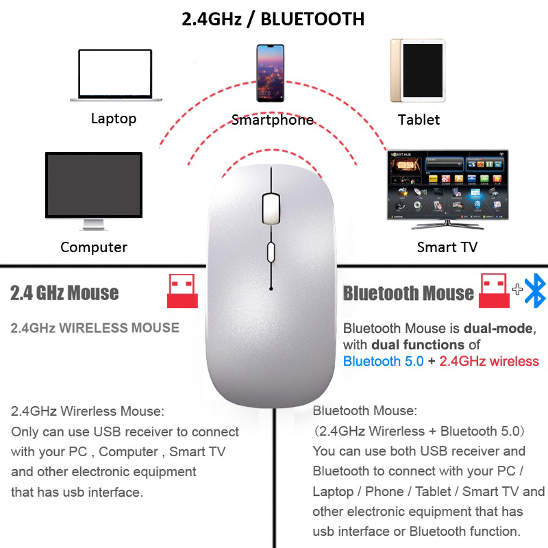 (SG STOCK) Wireless Mouse Rgb Led 2.4Ghz Silent Rechargeable 1600dpi Slim Portable With USB Receiver Computer PC Laptop