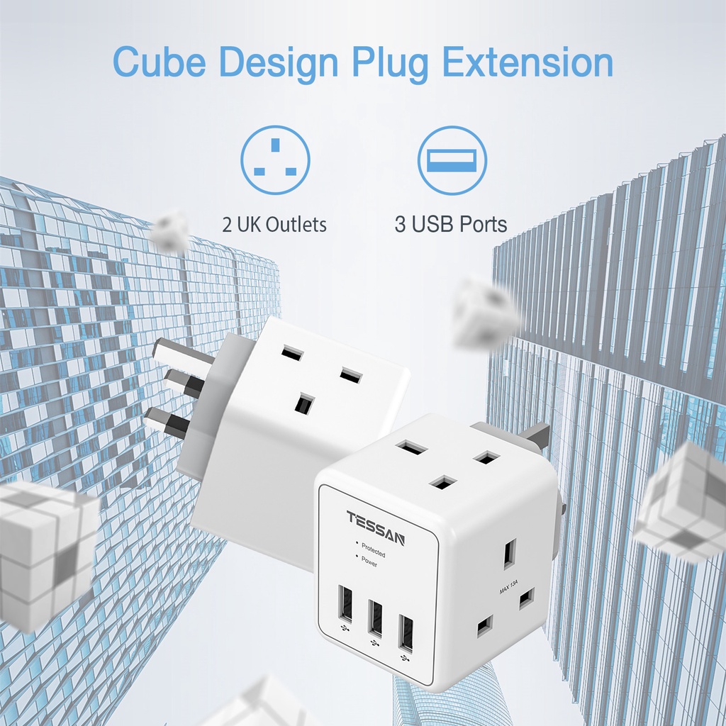 TESSAN Multi Plug Extension Adapter with USB+Type C,Surge Protector Wall Socket Charger Safety Mark