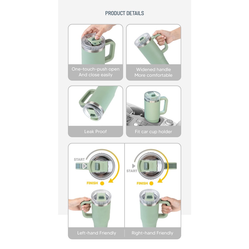 TYESO Thermal Tumbler Flask 900ml 1200ml Water Bottle Car Cup Vacuum Insulated Tumbler Coffee Cup