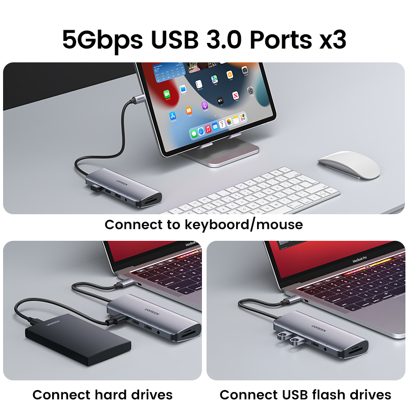 UGREEN USB C HUB 10 in 1 Converter Type C to HDMI VGA Card Reader RJ45 PD Adapter For Macbook Pro 2022