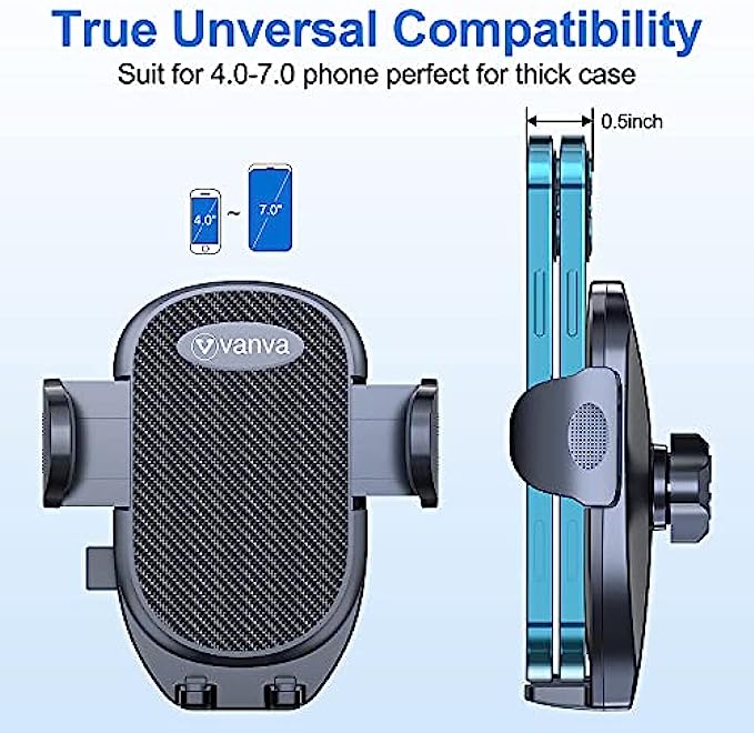 • [ Hold Your Phone Stably & Drive without Distracting ] vanva phone mount holder has anti-slip rubber pads, stable support shelf, firm & scratch-free claw offer secure grip for your cellphone to ensure safer driving. With all above these, the stability increase 5 times, even can stable support big phones and thick cases.