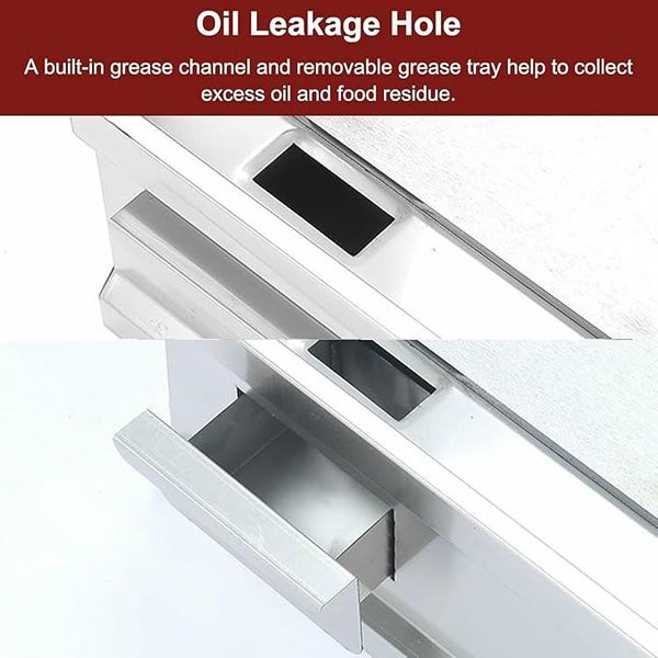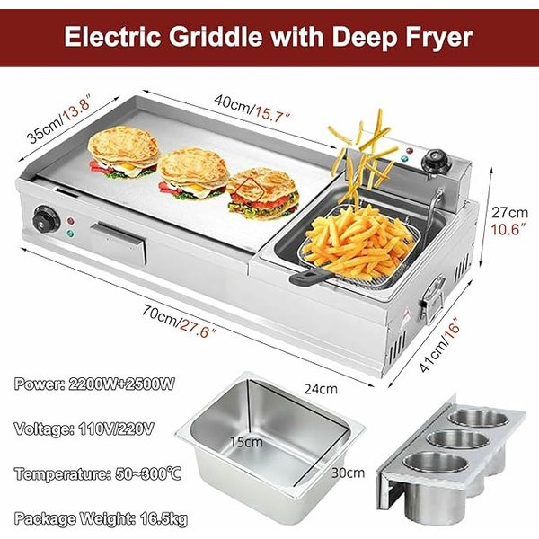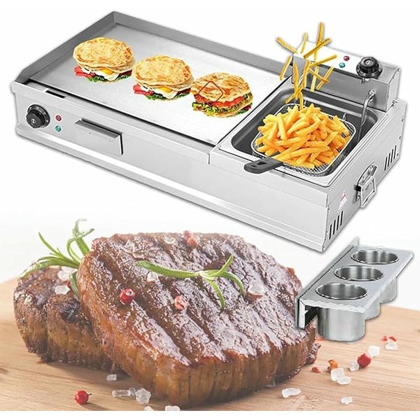 Commercial Electric Griddles Extra Large with Fryer, Countertop Griddle Stainless Steel Grill with Seasoning Rack, for Fried Pizza